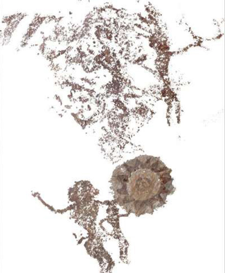 Italian researchers have discovered what might be the oldest nativity scene ever found - 5,000-year-old rock art that depicts a star in the east, a newborn between parents and two animals. The scene, painted in reddish-brown ochre, was found on the ceiling of a small cavity in the Egyptian Sahara desert, during an expedition to sites between the Nile valley and the Gilf Kebir Plateau. The scene features a man, a woman missing the head because of a painting detachment, and a baby. The newborn is drawn slightly above, as if raising to the sky. Such position, with the baby not yet between the parents, would have meant a birth or a pregnancy. On the upper part is a headless lion, a mythical beast which appears in several rock art drawings from the same area, while below in the scene a baboon or an anthropomorphic monkey can be seen. In the east, the Neolithic artist drawn what appears to be star. The researchers called the site the "Cave of the Parents." No doubt it's an intriguing drawing. They didn't find similar scenes until the early Christian age.