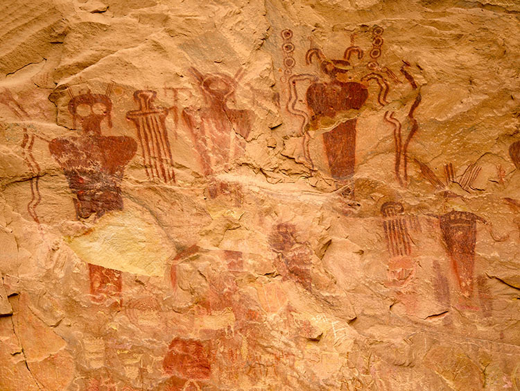 The Grand Canyon is a spectacular sight to behold in and of itself, but did you know the surrounding national park is also home to a wealth of prehistoric rock art? Don't be disappointed if you didn't - the exact whereabouts of the vast majority of it remains a closely guarded secret. Take Shamans’ Gallery, a site that most people would never have heard of were it not for word-of-mouth and later, the Internet. First recorded in 1987 and named by American archaeologist Polly Schaafsma, it features a large panel of rock art paintings - called pictographs - depicting anthropomorphic characters, deer, birds, and other abstract features.