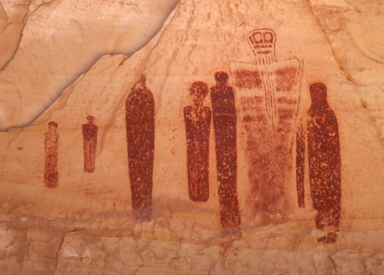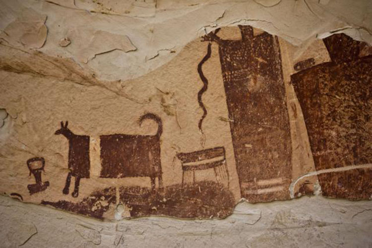 Now, using cutting-edge technology, researchers suggest the red paintings show five separate images, including a tall bug-eyed person, a smaller person, a sheep, a dog and a serpentlike figure. The rock paintings belong to the agrarian Fremont culture (circa A.D. 1 to 1100). Other Fremont rock paintings - known as Barrier Canyon style - show abstract humanlike figures with elongated bodies and round heads, the researchers wrote in the study. These long figures are usually accompanied by tiny "attendants," including people, birds and four-legged creatures, such as hoofed animals, canines, felines, badgers and bears.