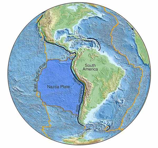 Nazca Plate - Oceanic tectonic plate in the eastern Pacific Ocean basin - 15,600,000 km2[note 1]