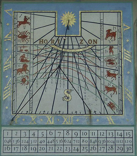 A sundial is a device that tells the time of day by the position of the Sun. In common designs such as the horizontal sundial, the sun casts a shadow from its style onto a surface marked with lines indicating the hours of the day. The style is the time-telling edge of the gnomon, often a thin rod or a sharp, straight edge. As the sun moves across the sky, the shadow-edge aligns with different hour-lines. All sundials must be aligned with their styles parallel to the axis of the Earth's rotation to tell the correct time throughout the year. The style's angle from the horizontal will thus equal the sundial's geographical latitude. It is common for inexpensive mass-produced decorative sundials to have incorrect hour angles, which cannot be adjusted to tell correct time. Read more ...