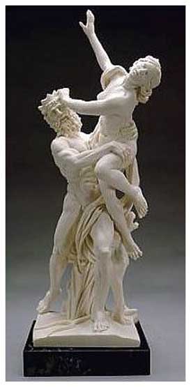 She was the daughter of Ceres and Jupiter, and was described as a very enchanting young girl.Venus, in order to bring love to Pluto, sent her son Amor to hit Pluto with one of his arrows. Proserpina was in Sicily, at the fountain of Aretusa near Enna, where she was playing with some nymphs and collecting flowers, when Pluto came out from the volcano Etna with four black horses.