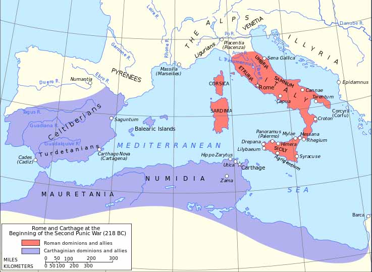 The Second Punic War, also referred to as The Hannibalic War, (by the Romans) The War Against Hannibal, or "The Carthaginian War", lasted from 218 to 201 BC and involved combatants in the western and eastern Mediterranean. This was the second major war between Carthage and the Roman Republic, with the crucial participation of Numidian-Berber armies and tribes on both sides. The two states had three major conflicts against each other over the course of their existence. They are called the "Punic Wars" because Rome's name for Carthaginians was Punici, due to their Phoenician ancestry.