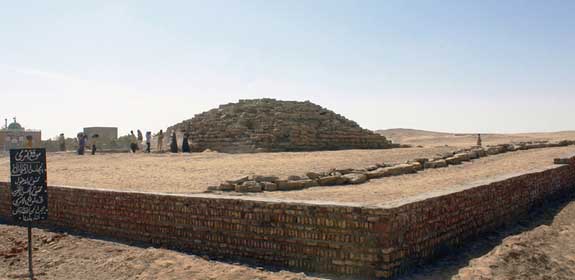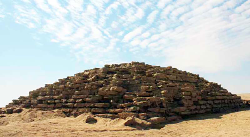 Built of sandstone blocks and clay mortar, it had been constructed in the form of a three-step pyramid. A core of blocks rises up vertically, with two layers of blocks beside it, on top of each other. This made the pyramid look like it had three steps.