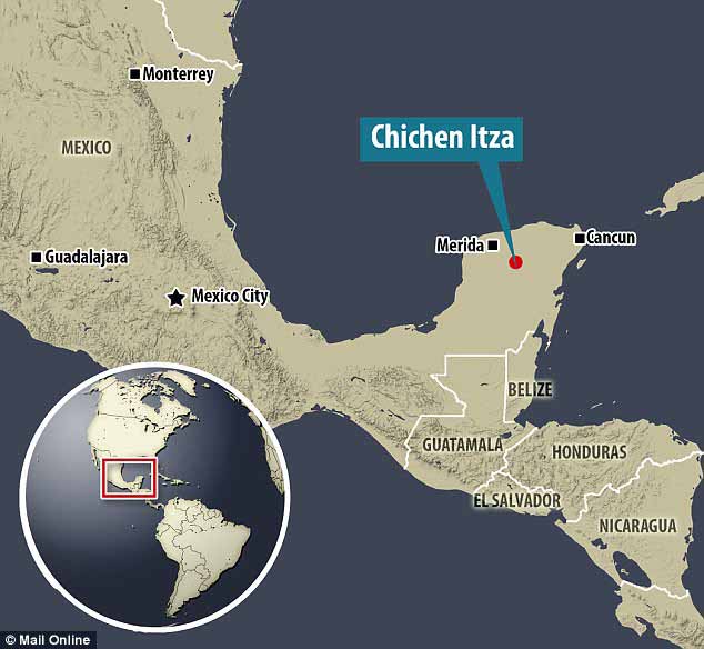 It is a towering testament to a long dead civilization and has fascinated archaeologists for more than 150 years, but one of the most famous Mayan pyramids has been hiding a secret beneath its mighty steps. Researchers have discovered an enormous sinkhole beneath the 1,000-year-old Temple of Kukulkan, also known as El Castillo, which dominates the Mayan city of Chichen Itza in the northern Yucatan Peninusula of Mexico. And they fear the underground cavern, or cenote, which has a river running through it, may eventually cause the entire pyramid to collapse if its roof gives way.