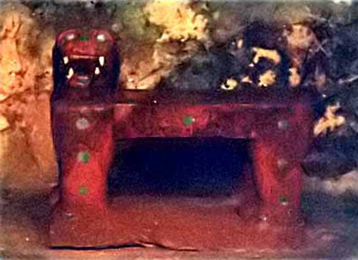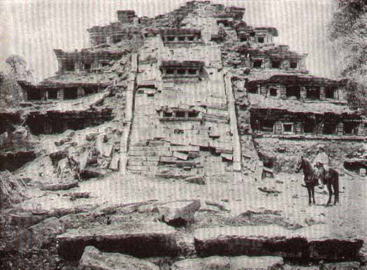 By digging from the top, they found another temple buried below the current one. Inside the temple chamber was a Chac Mool - a human figure in a position of reclining with the head up and turned to one side, holding a tray over the stomach.