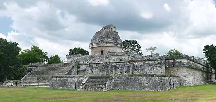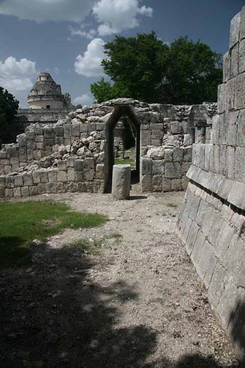 To the north of Las Monjas is a cockeyed, round building on a large square platform. It's nicknamed El Caracol ("the snail") because of the stone spiral staircase inside. The structure with its unusual placement on the platform and its round shape (the others are rectangular, in keeping with Maya practice), is theorized to have been a proto-observatory with doors and windows aligned to astronomical events, specifically around the path of Venus as it traverses the heavens.