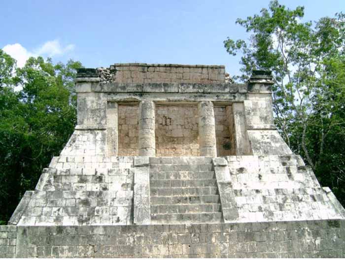 To the east of El Castillo are a series of buildings, the northernmost is the Temple of the Tables. Its name comes from a series of altars at the top of the structure that are supported by small carved figures of men with upraised arms, called Atlantes.