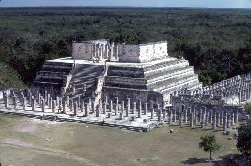The 'Temple of the Warriors' and its adjacent 'Temple of the Jaguar' are very impressive ruins of the complex. A massive temple structure, surrounded by hundreds of columns is carved with reliefs. The columns continue on into the jungle, that part of the temple still has not been restored.