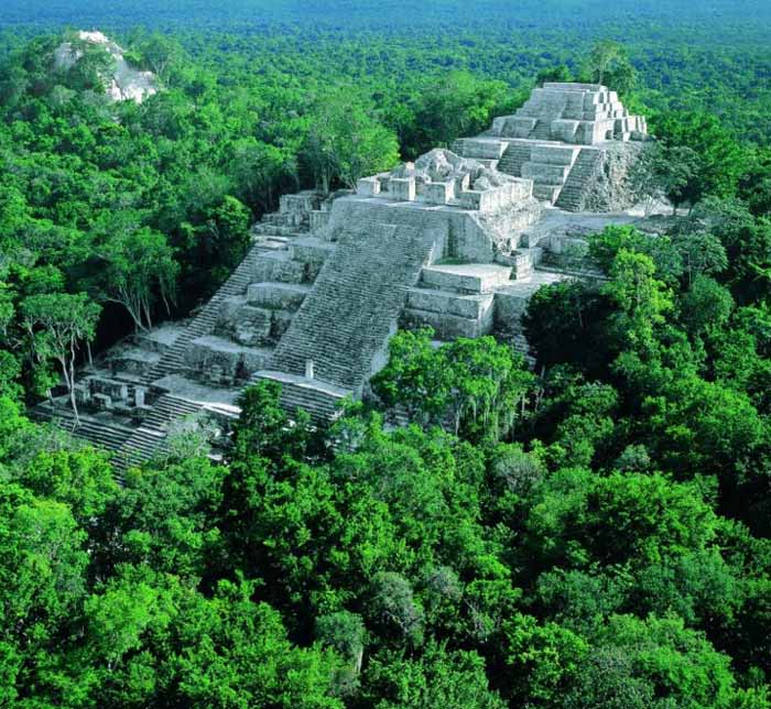 Calakmul (also Kalakmul and other less frequent variants) is also the name given to site of one of the largest ancient Maya cities ever uncovered. It is located in the 1,800,000 acre Calakmul Biosphere Reserve, deep in the jungles of the Peten, 30 km from the Guatemalan border.