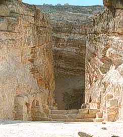 The layout of this "mortuary temple" on the east side of the pyramid is very different than other known Old Kingdom examples, and was apparently completed in haste. It was formed of rather thick fieldstone walls, finished with mudbrick to form the compartments and chambers surrounding an open courtyard. In the courtyard, some of the original pavement, storehouses and other architectural elements remain today. In the middle of the northeastern part of the structure stood a row of columns, apparently inscribed with Djedefre's cartouche, if fragmentary evidence may be believed. This is interesting, because other than some columns and half columns found at the complex of Djoser at Saqqara, this would represent the only appearance of columns in a pyramid complex mortuary temple prior to the 5th Dynasty.
