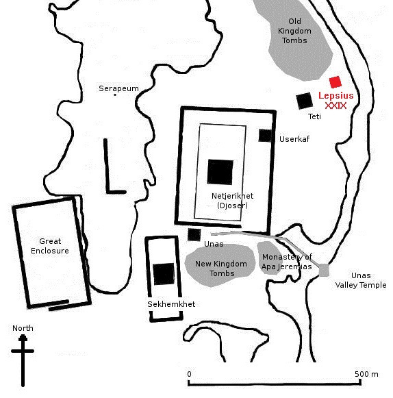 In 1842, German archeologist Karl Richard Lepsius mentioned it among his finds at Saqqara, referring to it as number 29 and calling it the "Headless Pyramid" because only its base remains. But the desert sands covered the discovery, and no archeologist since has been able to find Menkauhor's resting place.