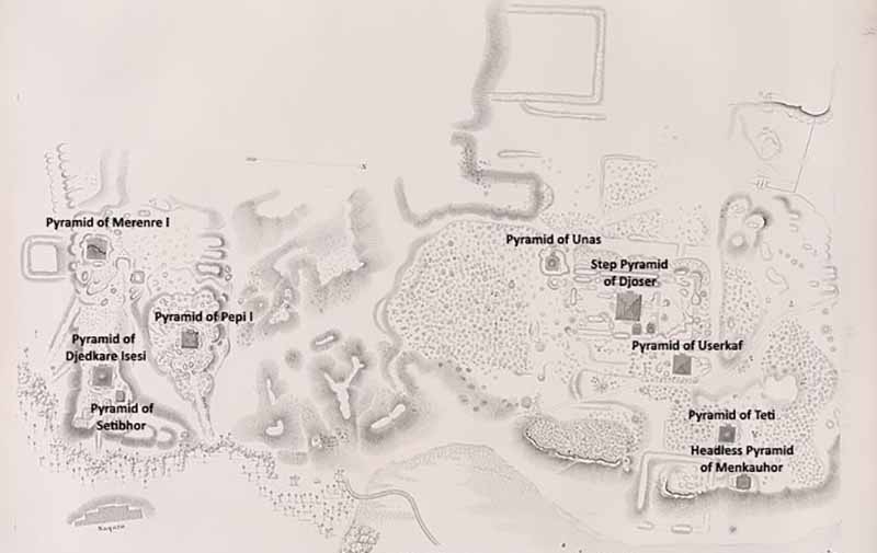 Pepi I selected a site about 2.4 km (1.5 mi) north of Djedkare's pyramid in South Saqqara. Mark Lehner suggests that siting the pyramid in North or Central Saqqara may not have been possible after Teti built his pyramid there, and that this may be the reason for Pepi I's choice to move to South Saqqara.