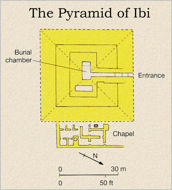 Ibi's pyramid is the last ever built in Saqqara, located to the northeast of Shepseskaf's tomb and near the causeway of the Pyramid of Pepi II. It is very similar in plan, dimensions and decorations to the pyramids of the queens of Pepi II, the last great pharaoh of the Old Kingdom. Consequently it was proposed that the pyramid was originally that of Ankhnespepi IV - "Pepi lives for her" - a wife of Pepi II, and was only later appropriated by Ibi. Adjacent to the pyramid is a small chapel where the funerary cult took place. No trace of a causeway nor of a valley temple has been found to this day, and it is likely that there never was any.
