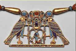 West of the entrance shaft of the pyramid Petrie discovered the ruins of the tomb of Princess Sathathoriunet (Sithathoriunet), where he discovered the famous Treasure of el-Lahun, which included wonderful jewelry and other items from the her burial equipment. These items included a gold headband, a gold necklace of small leopard's heads, two gold pectorial ornamented with precious stones one of which was inscribed with Senusret II's name and the second with the name of Amenemhet III. There were also other bracelets, rings and alabaster and obsidian vessels that were decorated with gold, all of which today can be found in the Egyptian Antiquities Museum in Cairo.