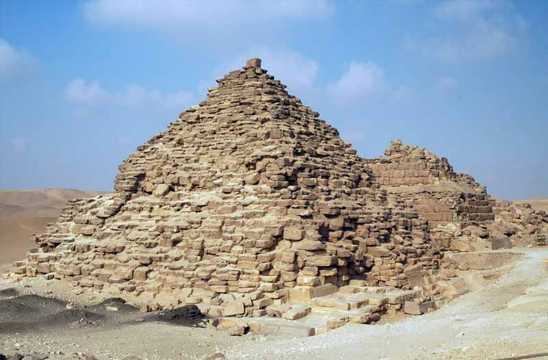 The core was built up in stepped horizontal courses. Interestingly, the mudbricks vary in size, suggesting that no mould was used, and there are finger marks on some bricks, presumably to monitor the progression of the work. These bricks were laid without mortar, though sand was used to fill the seams. Apparently, the pyramid lasted into the reign of Ramesses II in the New Kingdom, because from the graffiti of visitors we know that at that time it continued to inspire admiration. However, within two hundred years after Ramesses II's reign, it laid in ruins.