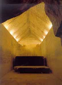 the Pyramid Texts inscriptions hewn in the polished stone walls and ceiling.