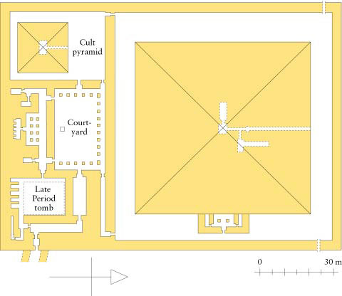 As the pyramid has been used as a reservoir for limestone by stone robbers since antiquity, it is currently run-down. The mortuary temple was located south of the pyramid, unlike other mortuary temples which are mostly situated in the east. Only few blocks are left of Queen Neferhetpes's pyramid, Userkaf's wife.