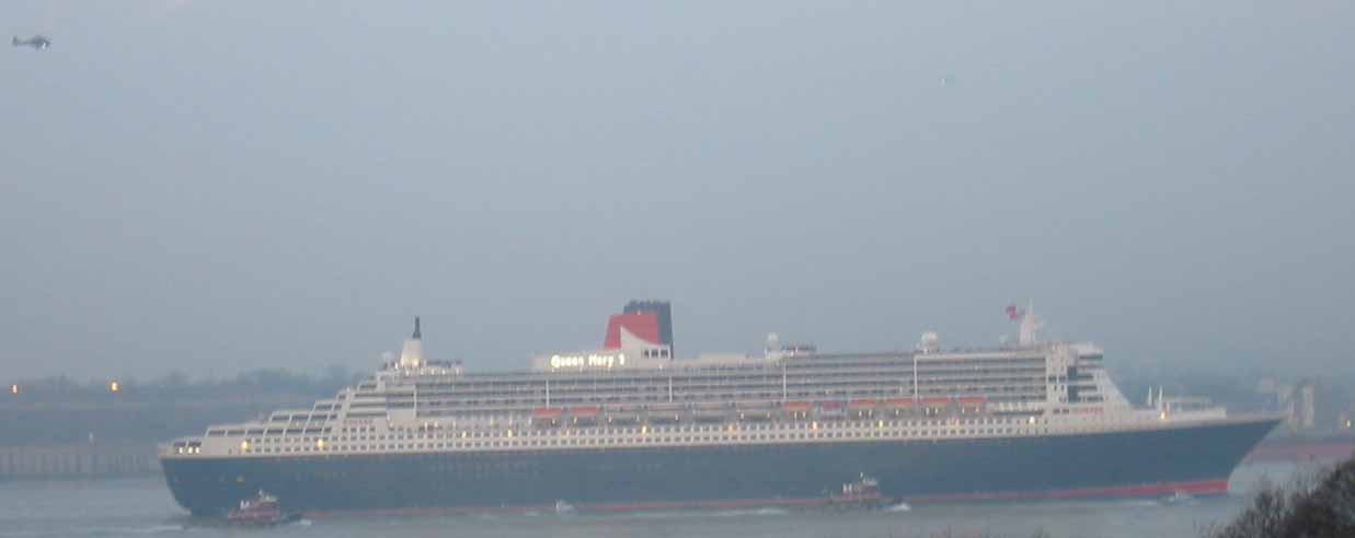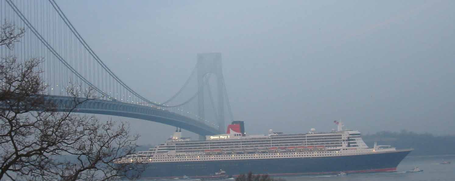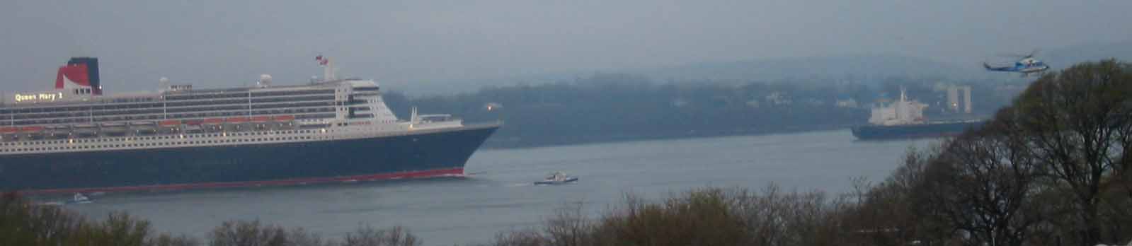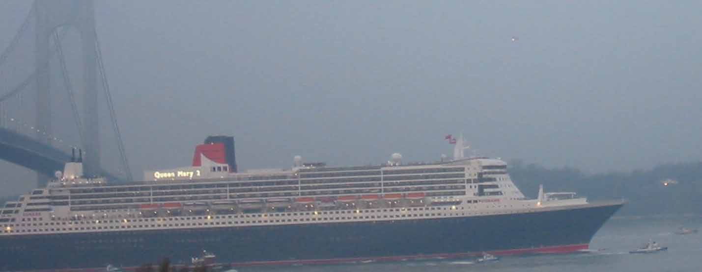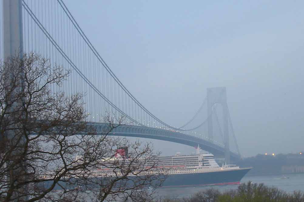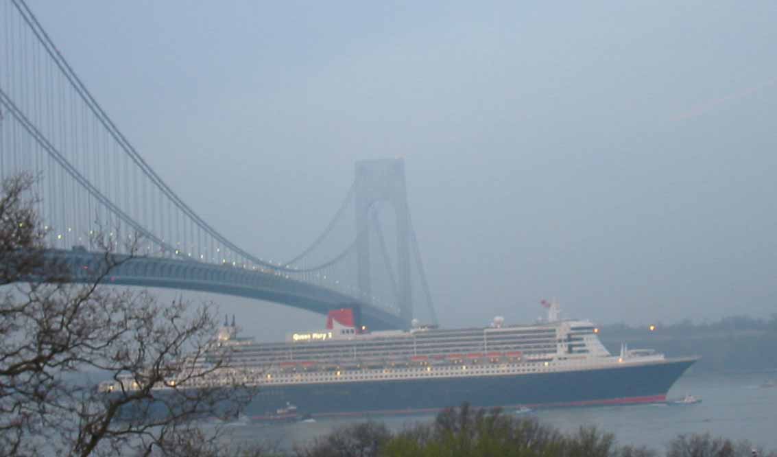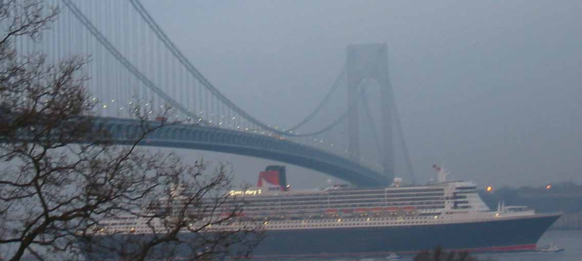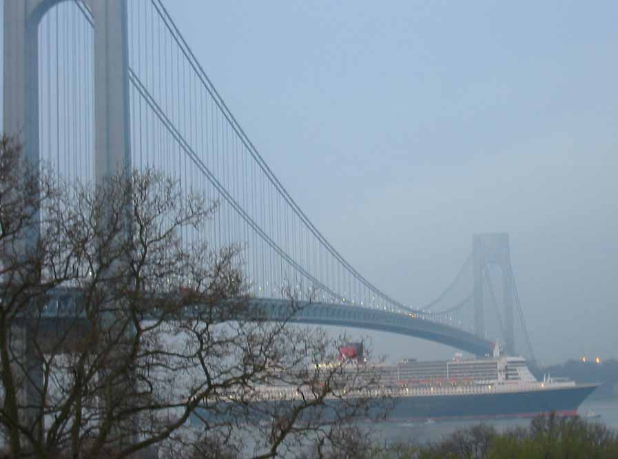 Z shouted, "Get your digital camera...The QM 2 is about to go under the bridge on its maiden voyage."