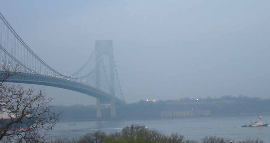 I jumped up in bed! The clock radio read 6:15. Outside - I could hear the sounds of helicopters and fog horns [Tibetan chants? - An external stimulus causing a dream image?] - from boats passing under the Verrazano Bridge in the dense fog that was just beginning to lift.
