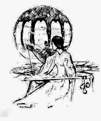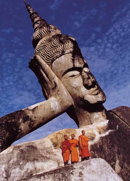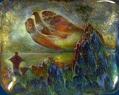 the Buddha leaves the high place where he works and dwells,