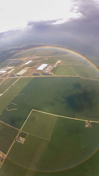 Circular rainbow seen while skydiving over Rochelle, Illinois