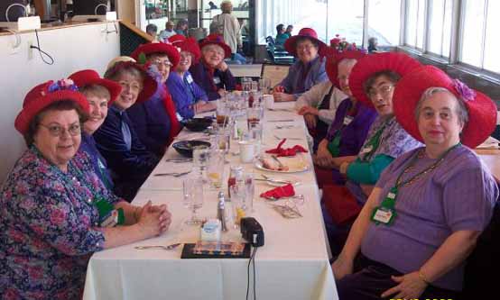 There is an international group of women, age 50 and up, who meet monthly and wear purple dresses and red hats.