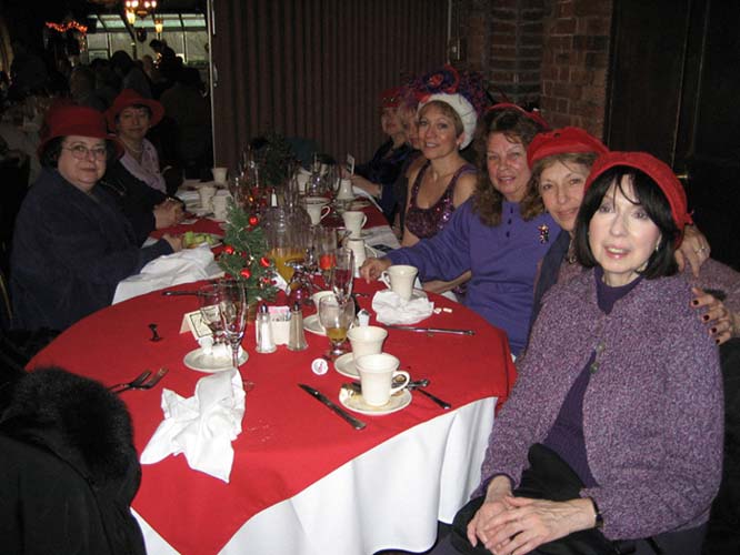 At a table not far from where my friends and I sat, the Red Hat Society was having a Christmas Party. I remembered blogging about the organization years ago. I was drawn to walk over to their table, which led to a conversation about who I am, who they are, what I do, what they do as a group. Lots of laughs and fun as they asked me to join them for a while. They all took my business cards and asked about having a reading, a party, or whatever, as they are all local. It's interesting to note that the ladies wear red hats with purple tops, except on their birthday month, when they reverse the colors.