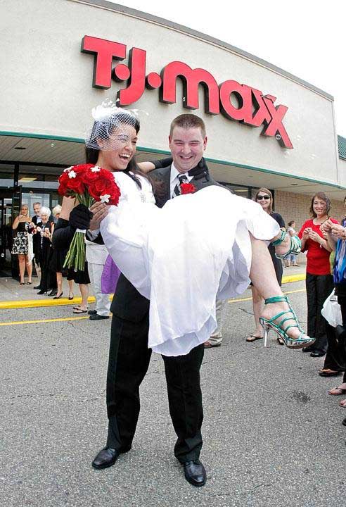 With the recession, the Retail Wedding is fast becoming a trend. Instead of traditional ceremonies in a church or banquet hall, a growing trend in the world of matrimony includes couples tying the knot in their favorite retail spots. The shops range from T.J. Maxx, Home Depot, to Taco Bell, and they all combine the couple's love for a brand with a desire to have a wedding with a personal twist. The saving can be small or in the thousands.