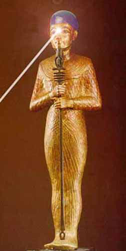 Ptah holds a Djed - symbol of stability