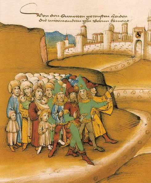 The first historical records of the Romani reaching south-eastern Europe are from the 14th century.[citation needed] In 1322, an Irish Franciscan monk, Symon Semeonis encountered a migrant group, "the descendants of Cain", outside the town of Heraklion (Candia), in Crete. Symon's account is probably the earliest surviving description by a Western chronicler of the Romani people in Europe. In 1350, Ludolphus of Sudheim mentioned a similar people with a unique language whom he called Mandapolos, a word which some theorize was derived from the Greek word mantes (meaning prophet or fortune teller).
