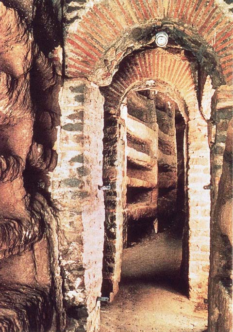 Sited along the Appian way, these catacombs were built after AD 150, with some private Christian hypogea and a funeral area directly dependent on the Catholic Church. It takes its name from the deacon Saint Callixtus, proposed by Pope Zephyrinus in the administration of the same cemetery - on his accession as pope, he enlarged the complex, that quite soon became the official one for the Roman Church. The arcades, where more than fifty martyrs and sixteen pontiffs are buried, form part of a complex graveyard that occupies fifteen hectares and is almost twenty km long.