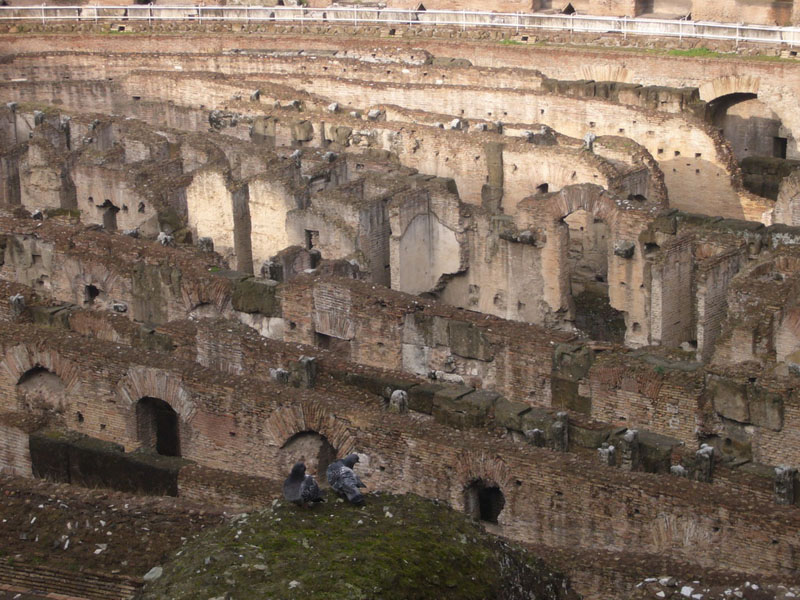 A room called the "Triglia" rises from the platform, roughly in the middle of the basilica and cut into from above by the present basilica. This covered room was used for funereal banquets; the plastered walls have hundreds of graffitoes by the devotees at these banquets, carved in the second half of the 3rd to the beginnings of the 4th century, with appeals to the apostles Peter and Paul.