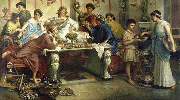 Among the members of the upper classes, who did not engage in manual labor, it became customary to schedule all business obligations in the morning. After the prandium, the last responsibilities would be discharged, and a visit would be made to the baths. Around 2:00 pm., the cena would begin. This meal could last until late in the night, especially if guests were invited, and would often be followed by a comissatio (a round of drinks).
