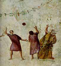 Ball-playing was popular among the Romans, and they often spent their morning exercises playing games on the fields (palaestra) or ball-courts (sphaerista). The Romans enjoyed a variety of ball games, including Handball (Expulsim Ludere), Trigon, Soccer, Field Hockey, Harpasta, Phaininda, Episkyros, and certainly Catch and other games that children might invent, like Dodge Ball. An additional game called Roman Ball is theorized to fill some gaps. The pages linked on the right provide descriptions of these games.