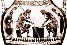 Soccer is a natural game and although the Romans may not have played team soccer there are references to boys kicking balls around in the streets. Cicero described one court case in which a man getting a shave was killed when a ball was kicked into the barber. The ball must have been an inflated pila. The mosaic from Ostia, above, shows what appears to be an inflated pila, stitched in the fashion of modern soccer balls. Considering that this scene represents a gym, it might be also a paganica, or medicine ball, but paganicas are always shown as oblong.