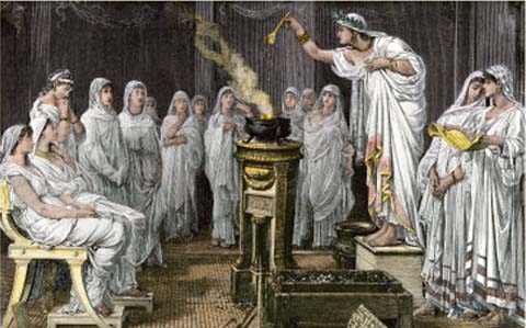 Vesta's presence is symbolized by the sacred fire that burned at her hearth and temples. Her closest Greek equivalent is Hestia. The importance of Vesta to Roman religion is indicated by the prominence of the priesthood devoted to her, the Vestal Virgins, Rome's only college of full-time priests.