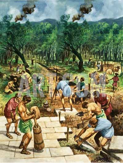 The libratores began their work. Using ploughs and legionaries with spades, they excavated the road bed down to bed rock or at least to the firmest ground they could find.