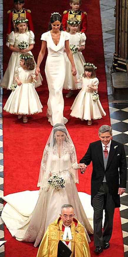 Kate looked radiant. Her stunning dress was designed by Sarah Burton for Alexander McQueen fashion house. (Was that a Sarah and Alexander moment?) Kate, who looks a lot like Sarah in the story, wore her hair half-up, half-down and with a dramatic veil and a tiara from Queen Elizabeth II. Kate looked every bit the fairy tale princess. Here sister Pippa also wore a dress by Sarah Burton and looked amazing.