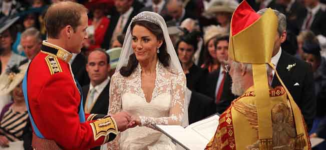 The weather in London was not only cooperating with no rain, but the news showed the clouds parting as Kate arrived at Westminster Abbey. A reported from Access Hollywood said that the moment Kate and William became husband and wife, the clouds parted and the sun beamed down.
