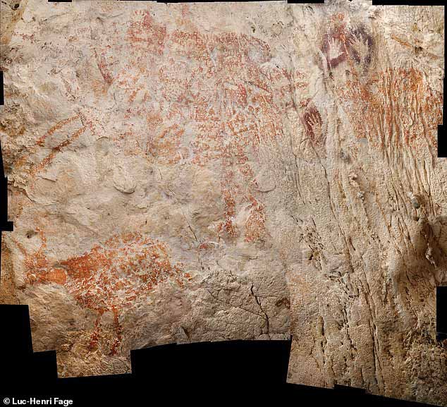 An image of a warty pig painted onto the wall of an Indonesian cave some 45,500 years ago may be the 'world's oldest-known figurative artwork', a study has claimed. Researchers from Australia and Indonesia found the painting of the native wild boar on the rear wall of the Leang Tedongnge cave in the south of the island of Sulawesi. The team said that the life-size image provides the earliest evidence for the presence of anatomically modern humans on Sulawesi.