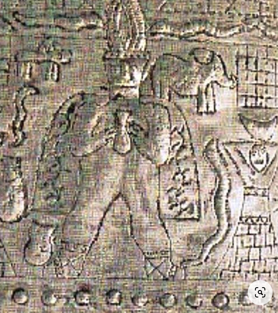 Some of the painting have bizarre depictions of what appear to be spacemen wearing suits, visors, and helmets. resembling modern day astronauts. This takes us to the west African tribe - the Dogon whose legends say they were guided to the area from another part of Africa that was drying up - by fish gods called the Nommo who came in huge ships from the sky. Google Images