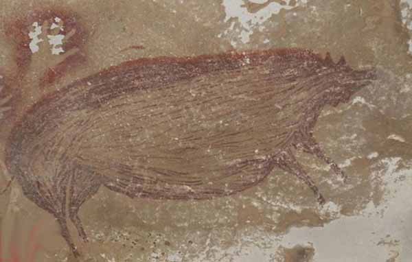 Archaeologists have discovered the world's oldest known animal cave painting in Indonesia - a wild pig - believed to be drawn 45,500 years ago.