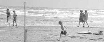 Almost as much fun as building beach dams is deliberately breaking them to cause a flood. If the beach is at an ocean, or at a sea connected to an ocean then there can be tides. These tides add attractive dynamics: on flood-tides the rising water enters previously dry ditches and pits, and one can try to keep areas dry by dikes, etc.; on ebb-tides one can try to keep water in a canal by deepening it and lengthening it, keeping it connected to the retracting sea. If one returns the next day much erosion is apparent - in fact only large excavations at all survive one excursion of the tide, and beach dynamics soon enough smooth out the surface, erasing everything. Sandcastles