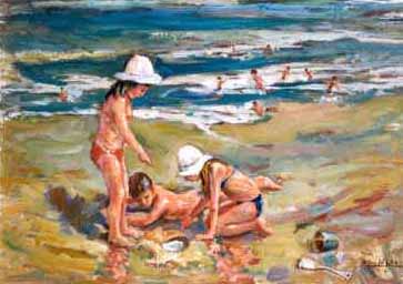 Children play on the beach, the flow of creation surrounding them, grains of sand that link us back through the sands of time to the Middle East and the Gods and Goddesses of Creation. They pick up some wet sand allowing it to fall through their fingers onto the ground. They watch as it forms a small hill, a pyramid or castle before them.