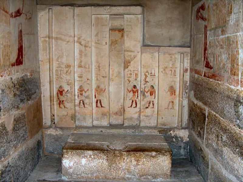 The mastaba is located north of the Pyramid of Unas. It is very well preserved and fascinating. There are three rooms in this tomb. The most interesting is the second room. It contains some scenes of Nebet in the harem, or women's quarters, in the palace, which is rare to be seen. A gallery can be reached through a doorway from the second room. This gallery's walls are beautifully decorated.