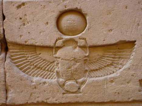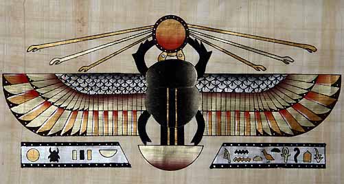Like Atum, Khephir was a self-created god. The scarab lays its eggs in a ball of dung and rolls it to hide in a safe place. From this unlikely substance the Egyptians observed new life emerging, seemingly from the Earth. Hence he was a god of creation. Early in Egyptian history the beetle also came to represent the soul rising from death - resurrected, transcendent, fully formed and ready to make its journey and face its judgment in order to live in the Afterlife. By the New Kingdom (1539-1070 BC), the funerary texts from the papyri portray a scaraboid form as the most powerful symbol of life's victory over death.