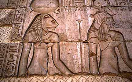 Sekhmet became identified in some later cults as a daughter of the new sun god, Ra, when his cult merged with and supplanted the worship of Horus (the son of Osiris and Isis, who was one of the oldest of Egyptian deities and gave birth daily to the sun). At that time many roles of deities were changed in the Egyptian myths. Some were changed further when the Greeks established a royal line of rulers that lasted for three hundred years and some of their historians tried to create parallels between deities in the two pantheons.