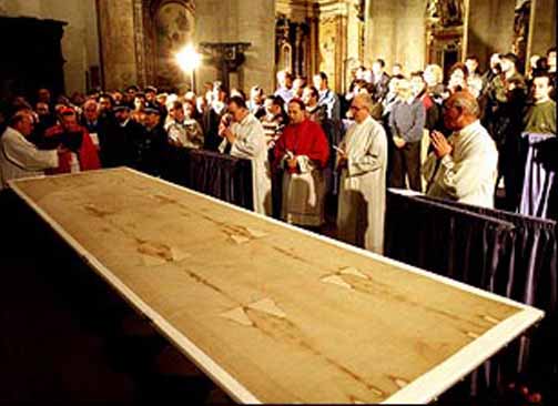 The Shroud of Turin (or Turin Shroud) is an ancient linen cloth bearing the image of a man who appears to have been physically traumatized in a manner consistent with crucifixion. It is presently kept in the royal chapel of the Cathedral of Saint John the Baptist in Turin, Italy.