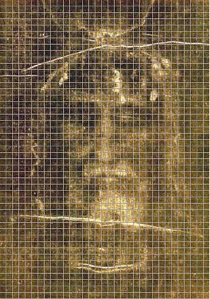 Through the use of microscopy, it has been determined that the image is a result of discoloration of only the outermost fibers of the fabric, which suggests that the image may have been created through a radiative process. Painting appears to be ruled out.